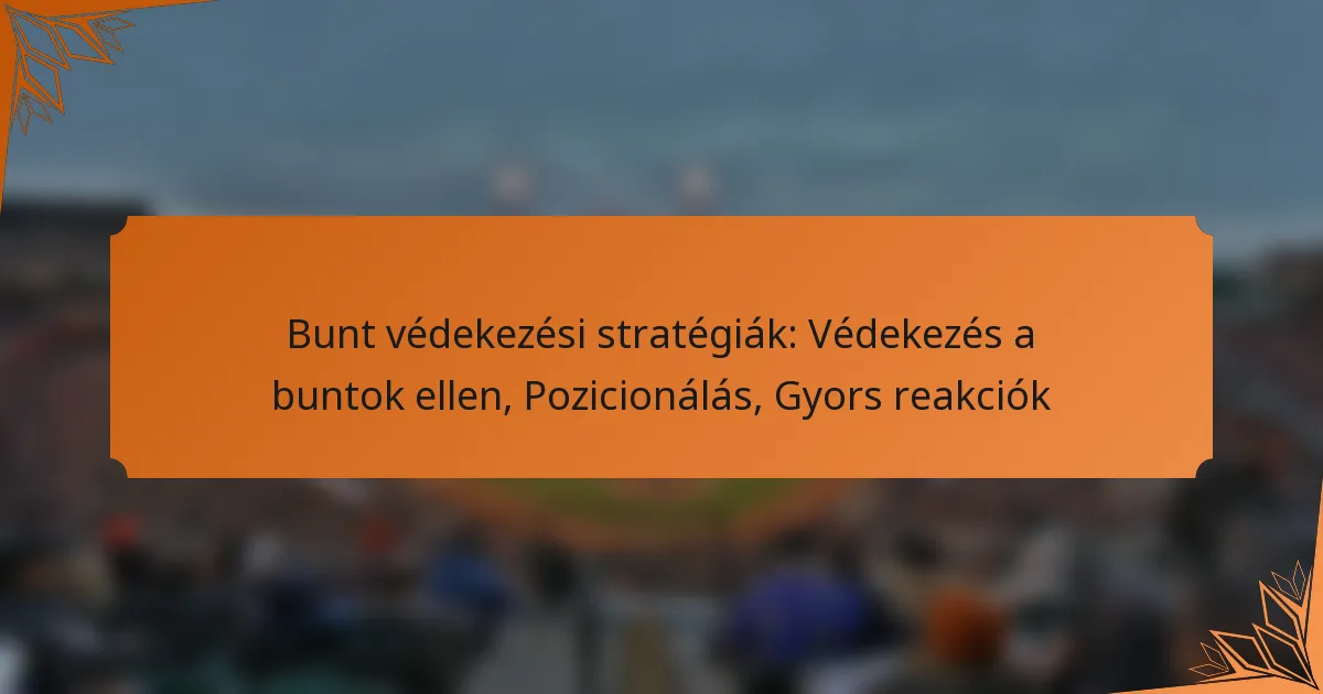 A hatékony bunt védekezési stratégiák a gyors reakciókra és a megfelelő pozicionálásra összpontosítanak, hogy minimalizálják a ütő esélyeit az alapra jutásra. A csapatok választhatnak agresszív és konzervatív megközelítések között, mindkettőnek megvannak a saját erősségei és gyengeségei a játékhelyzettől függően.