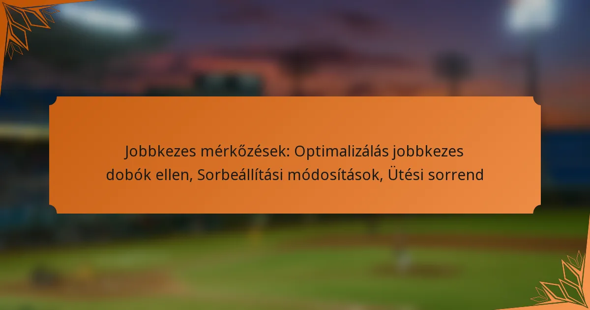 A jobbkezes dobók ellen történő összeállítások optimalizálásához a csapatoknak a batting sorrend módosítására, a platoon előnyök kihasználására és a játékos statisztikák elemzésére kell összpontosítaniuk. A játékosok teljesítményének és egészségének megértése kulcsfontosságú a hatékony döntések meghozatalához, amelyek növelik az offenzív teljesítményt.